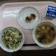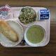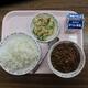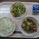 今日は、子どもたちに大人気メニューの一つでもある「ハヤシライス」です。豚肉やニンジン、玉ねぎ、グリーンピース、エリンギなどが入っていています。ルーもとても美味しいです。サラダはキュウリやキャベツ、コーンが胡麻ドレッシングで和えてあって、こちらもとても美味しいです。