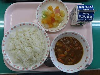 たまに食べたくなるのがハヤシライス。今日の給食も大変おいしくいただきました。デザートのフルーツポンチに野尻っ子も大喜びです。