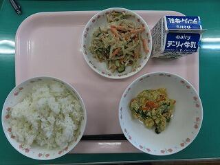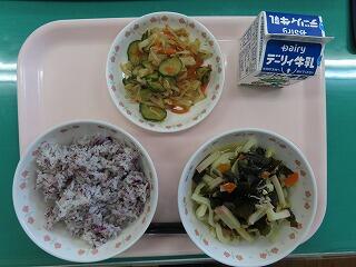 9月になりました。夏休み明けに台風10号接近による3日間の臨時休業がありましたので、今日は一週間ぶりの給食となりました。「ゆかりごはん」に「わかめうどん」、「おかか和え」とすべておいしくいただきました。