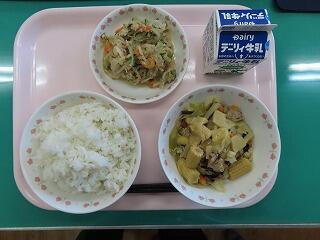 今日の給食もご飯がすすむメニューでした。「きくらげ」「たけのこ」「ちんげんさい」と具沢山で美味しかったです!