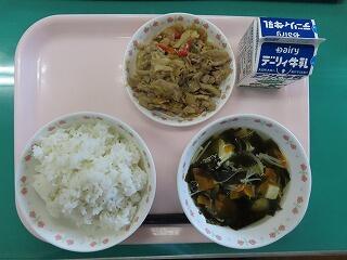 麦ご飯 わかめスープ 焼き肉 牛乳