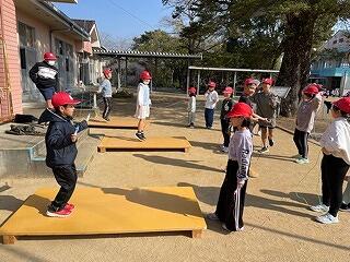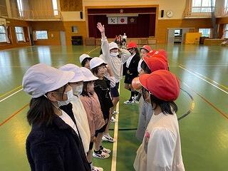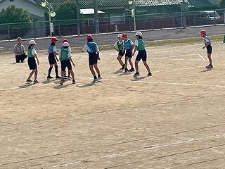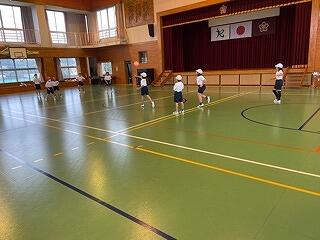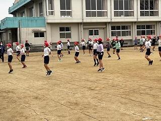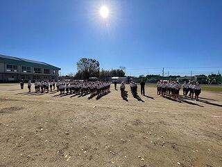6年生は、体育科の学習で集団行動(整列、隊形の変更、行進等)をしていました。きびきびした動きが見られました。