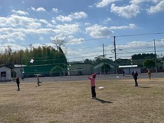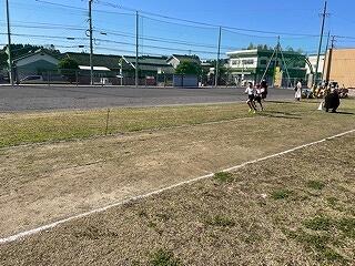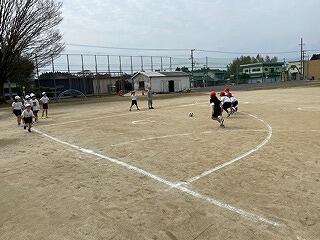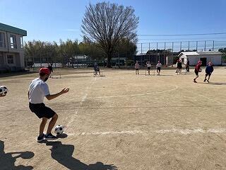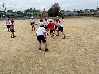 攻撃側はサークルの中のカラーコーンめがけてボールを投げ、守り側はそれをサークルの外で防ぐんだそうです。様子を見ていると、「4回あてました!」「おもしろいです!」とうれしそうに報告してくれました。この学習はドッジボールやバスケットボールなど球技につながっていく運動です。何より楽しそうに学習に取り組んでいる様子が印象的でした!大変白熱していました!