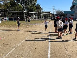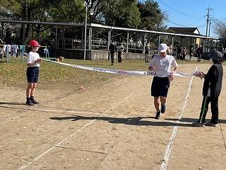 11月24日(木)、持久走大会がありました。低学年は800m、中学年は1000m、高学年は1300m走りました。子どもたちは、自分の目標を決め、これまで1か月間、持久走月間として体育の時間や朝の時間、昼休み等をつかって、こつこつ持久走練習に取り組んだ成果を発揮しようと、一人一人ゴールを目指して一生懸命に走りました。途中、苦しくなっておなかを押さながらも立ち止まることなく走りきった子ども、目標順位より順位がさがりくやしくて泣きながら走った子ども、断トツトップでも、最後までスピードを緩めることなくぶっちぎりでゴールした子ども、最下位でどんなに前との差が開いていても、ゴールまで自分のペースを守り続け走り続けた子ども、友だちの走りを見つめ、声の限りに「がんばれー!」と応援し続けた子ども等々、がんばる子どもたちの姿をたくさん見ることができました。子どもたちは今の自分にできるベスト(精一杯の力)を出し切ることができました。本当によくがんばりました。