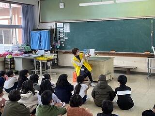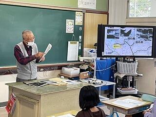 11月24日(木)、4年生は社会科見学事前学習として、地域にお住まいの桂木 喬 様を講師にお招きし、野尻原開田事業を成し遂げた地域の偉人「田丸 貞重」についてのお話を聞かせていただきました。今から100年前に、水に乏しかった野尻に水を引くために、県にかけあったり、資財を投げうったりして、地域の人々と力を合わせ、水路を引き、野尻原に田を開いた功績を1つ1つ丁寧に説明して頂きました。「田丸 貞重」の取組をもとに、田丸氏が常々大切さを訴えていた「共同助力」という言葉をもとに、「夢をもつことの大切さ」「目標に向かって努力することの大切さ」「力を合わせることの大切さ」など、子ども達の心に響くように語りかけてくださいました。4年生の子ども達は11月29日(火)に、野尻原用水路の見学に行きます。その際にも同行頂き、現地でもいろいろと説明していただくことになっています。学習を通して、先人への感謝や地域を愛する心の育成に大いにつながるものと思います。桂木先生ありがとうございます。