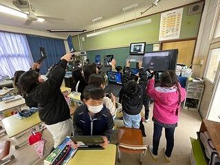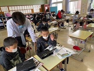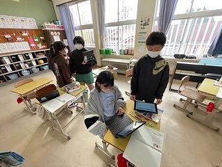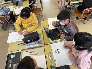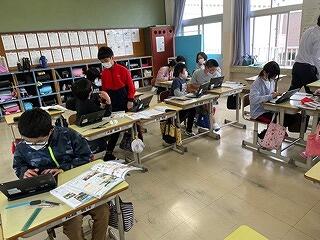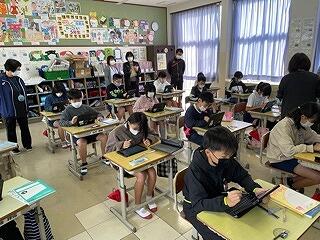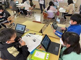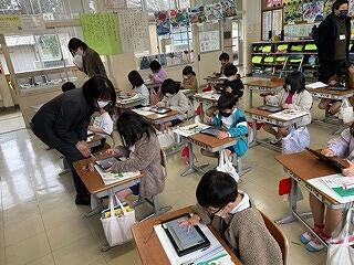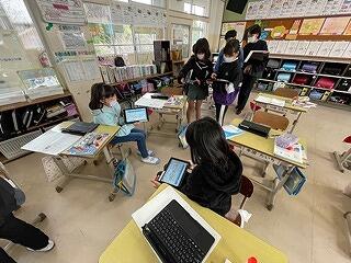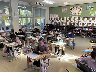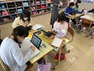 4年生はタブレットをつかって学習をしていました。