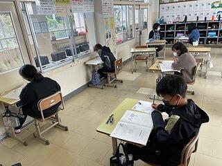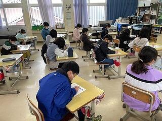12月1日(木)、5年生は「みやざき小中学校学習状況調査」を実施しました。県内すべての小学5年生及び中学2年生がこの調査問題に挑みます。野尻小学校の5年生はこれまで学習してきた成果を発揮しようと時間いっぱい問題と向き合い、最後まであきらめずに問題を解いていたようです。今後、テスト結果をもとに教育指導の充実や学習状況の改善等に役立てていく予定です。