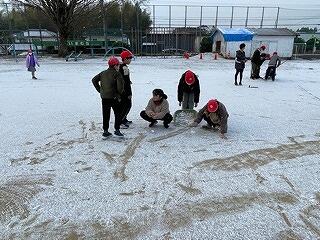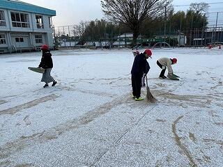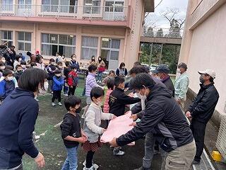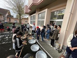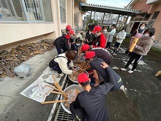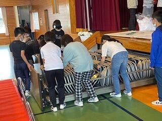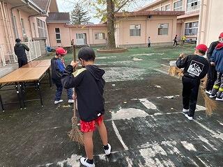 12月2日(金)、明日のもちつき大会に向けて、保護者の協力を得ながら、5・6年生が会場準備をしました。