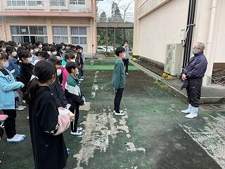1月16日(月)、地区集会がありました。2学期前半の登下校の反省と冬休み明けの登校状況の確認を行いました。集合場所や集合時刻が守れているか?一列登校ができているか?元気な挨拶ができているか?交差点で安全に待つことができているか?など、地区担当の先生と一緒に一つ一つ確認していきました。まだまだ寒い日が続きますが、2学期後半も交通安全に十分気をつけて登校してほしいです!