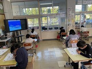 4年生は社会科の「伝統の技を守る」学習に取り組んでいました。「弓」を伝える人々の工夫について副読本を使って調べていました。弓道大会の動画視聴では弓を放つまでの様子を集中して見つめていました。伝統文化の継承することの大切さに気付くことができたと思います。