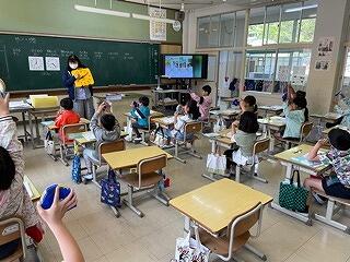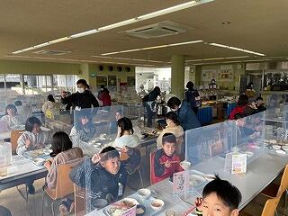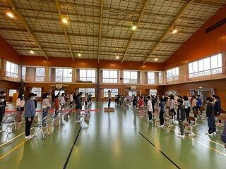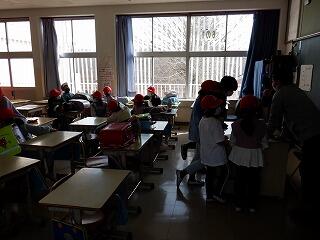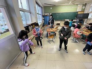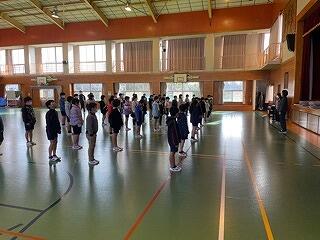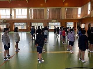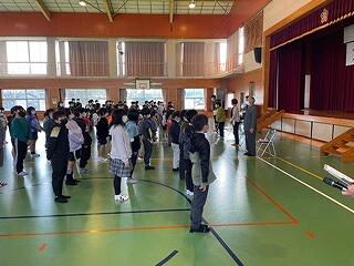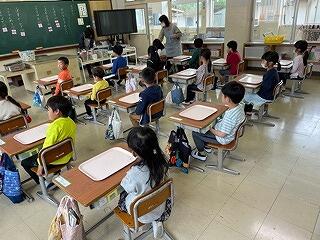 2年生は、給食時間の在り方について、動きを確認していました。
