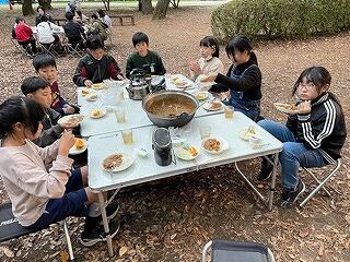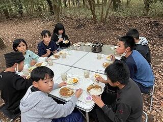 自然の中で自分たちがつくったカレーを食べる様子