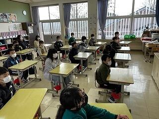 野尻小では、毎年、この時期に各学年の児童の代表者が数名、お昼の放送の時間に、6年生に対する感謝のメッセージを述べています。一人一人、自分で文章を書き、心をこめて、それぞれのエピソードで「ありがとう」を伝えることができました。