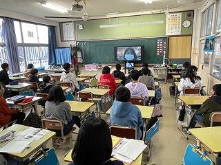 1月6日(金)、2学期後半はじめの日の全校集会を行いました。今回も、新型コロナウイルス感染症防止の観点から、放送室と各教室をつないでズームによるオンラインで開催しました。校長として、冬休みの生活についてお願いしたことがきちんと守れたかどうかについて児童に確認をしました。「124この命を必ずもって学校に戻ってくること」「計画をたて、冬休みを楽しむこと」のどちらもしっかりと守れたようでした!2学期後半は、6年生は52日、1~5年生は53日しかなく、1月(いく)、2月(にげる)、3月(さる)と表現されるように、あっという間に月日が流れていくことから、「今年の目標を決めて、達成に向けて努力していこう!」と話をしました。その後、学習担当の先生から、今月の生活目標である「学習のきまりを見直そう」について話がありました。学習中の姿勢をきちんとすること(立腰)や忘れ物がないか確認すること等、しっかりがんばってほしいと思います。