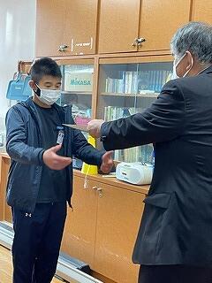 12月16日(金)、学校で12/5~9に取り組んだ赤い羽共同募金を社会福祉協議会の方が受け取りに来られました。期間中に運営委員の皆さんが毎朝、児童玄関前にたち募金を呼びかけ、本当にたくさんの募金が集まりました。募金して頂いたお金は地域の福祉に使われるそうです。皆様方の善意に感謝いたします。また、運営委員の児童の皆さんもありがとうございました。