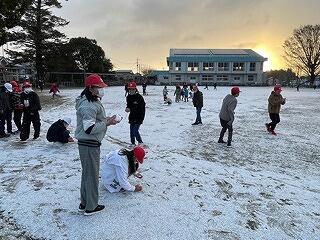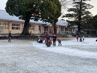 12月23日(金)、今年一番の寒波が訪れ、野尻小学校に雪がふりました。登校途中にパラパラッと粉雪が降り始め、途中で綿雪のようになり、学校につくとグラウンド一面が銀世界に!子どもたちは大喜びですぐに運動場へ駆け出しました。雪を集めて小さな雪だるまをつくったり、雪をまるめて雪合戦をしたり、、、みんな思い思いに自分のやりたいことをして楽しんでいました。地域の方に話を聞くと、こんなに雪が降ることはめったにないとのこと。子どもたちにとって2学期前半がんばったよいごほうびになりました!PS.寒波は週末まで続くようです。皆様、気をつけられてください。