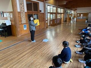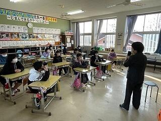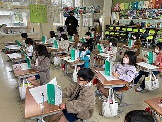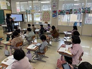 3月20日(月)、たんぽぽの会の皆様による今年度最後の読み聞かせがありました。今日は1年生から3年生でした。今回もみんなとても集中してお話を聞き、絵本の世界に引き込まれていました。いつも思うのですが、「たんぽぽの会」のみなさんは、本当に絵本を読むのがお上手です。下学年の子どもたちが目をキラキラ輝かせながら、想像力を膨らませて話に聞き入っていました。読み聞かせは子どもたちの心の教育につながり、聞く力や読み取る力の育成など学力の向上にも大いにつながっています。毎回、事前の準備も含めて、熱心に読み聞かせをしていただき、感謝の気持ちでいっぱいです。週の初めの朝の読み聞かせの実施により、1日のスタートがとてもよく、落ち着いた学校生活を過ごすことにもつながりました。