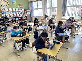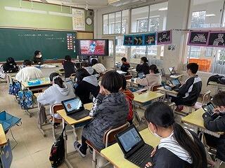 1月16日(月)の2校時に、5年社会科の研究授業がありました。「情報をいかして発展する産業」という単元の導入の第一時で、気象情報が産業にいかされているかどうかを、個人→グループで考える学習内容でした。子ども達はこれまで社会科の時間に学習してきたこと(農業や工業)や日常生活での情報活用場面を思い出しながら、こんな気象情報がこんな産業(仕事)に役立っているのではないかと予想を立て、活発に意見交流することができました。タブレットでたくさんの気象情報を検索しながら産業との関連性を考えるすばらしい授業でした!次の時間からは、具体的にどんな気象情報がどんな産業にどのようにいかされているのか一つ一つ調べていくようです。
