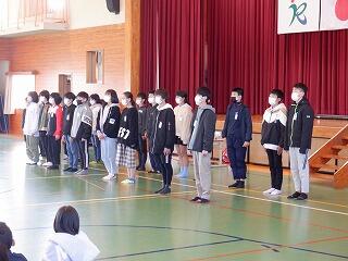 3月14日(火)、卒業式予行練習を行いました。昨日の反省をいかして、動きがそろっていました。歌声もよびかけも、卒業生、在校生ともにしっかり声が出ていました。本番まで、あとわずか。みんなで式を盛り上げようという意識が高まっています。