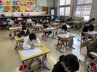 4月18日(火)、小学6年生を対象に「全国学力・学習状況調査」を実施しました。全国学力・学習状況調査は、国語、算数の2教科のテストがありました。6年生はこれまで学習してきた成果を発揮しようと時間いっぱい問題と向き合い、最後まであきらめずに解いていたようです。今後、テスト結果をもとに学校における教育指導の充実や学習状況の改善等に役立てていく予定です。