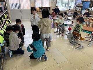 2年生は生活科の学校探検で、どの教室をどのように説明するかを各班ごとに話し合っていました。