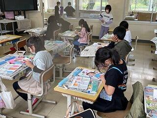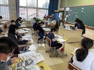 3年生は、新聞記事を読んで、先生が与えた問いに答える学習をしていました。NIEといって、新聞を教材として活用する活動です。この学びは、読解力と表現力の両方が育ちます。