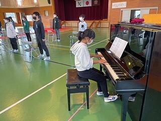 6年生は、音楽科で「おぼろ月夜」の歌の練習をしていました。歌詞をもとにして、気持ちをこめていました。