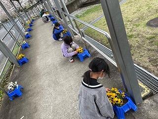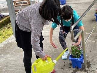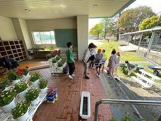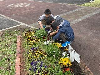 委員会担当の先生、児童、各学級の児童により、児童玄関前の学級園が整備され、花の植えかえが終わりました。花摘み、水やり、草取りなどのお世話をして、小さな苗がたくさんの花をつけ、玄関前を色づかせ花いっぱいにしてくれるでしょう!