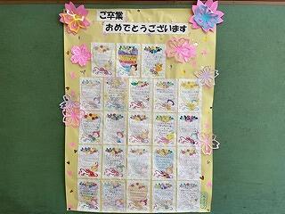 卒業式後には、6年児童、保護者主催の「卒業を祝う会」があり、卒業生がつくった動画を視聴したり、花束と感謝の言葉をいただいたりしました。ありがとうございました。