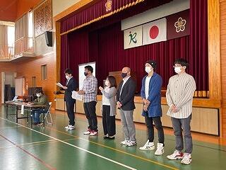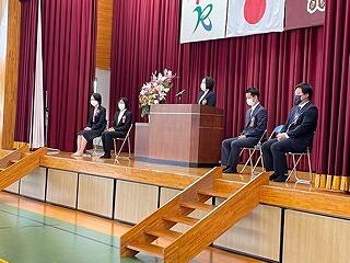 新しく転入された先生は、栗須小から、山下博史教頭先生、菓子野小から谷口朋代先生、上組小から米村彰先生、新規採用事務職員の髙野紗椰先生、特別支援教育支援員の村田佐代先生、用務員の眞喜志康雄先生の6名です。