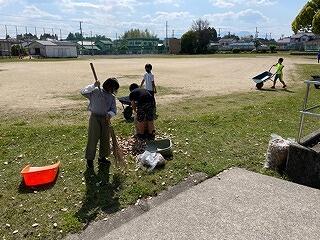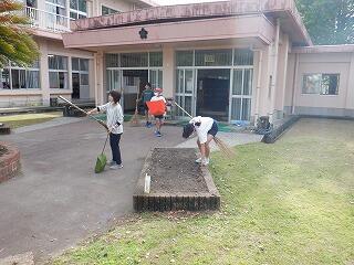 野尻小学校の伝統朝ボラ(清掃活動)を6年生を中心にがんばっています。今は落ち葉はきと、花壇の整備を熱心に行っています。強制ではなく、自主的に活動しているから、すごいです。「自主」「貢献」の心が育っています。