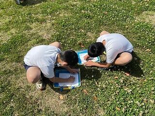 3年生は理科の学習で春の生き物探しをしていました。スケッチをし、見つけた春の説明書きまで頑張って取り組んでいました。