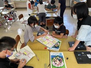 6月27日(月)2校時、5学年の研究授業がありました。こすもす科の授業で、「家庭学習をよりよくするにはどうすればよいか」というめあてで学習を進めていきました。テスト結果との相関関係から、勉強する時刻、場所、手順を決めて学習することの大切さに気付いたり、友だちの自学ノートの取組をタブレットでみて、よさをみんなで見つけあい、カテゴリー別に整理するグループ活動を通して、家庭学習内容を改善するためのプランをたてたり、、、たくさんの学びがありました。「家庭学習チャレンジカード」を活用し、今日から家庭での実践化につなげていくようです。楽しみです!