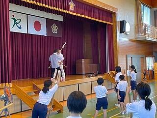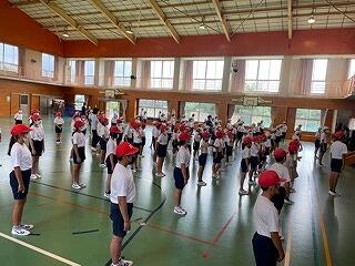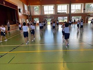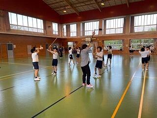 6月30日(木)6校時、5・6年生は4回目の棒踊り練習がありました。5年生もしっかりと型を覚え、見本をみなくても自分たちで、踊れるようになりました。6年生はさらに勇ましく踊れるようになりました。「ヤアサ!」「エイエイ!」などのかけ声も大きく、みんなとても動きがそろっていました。