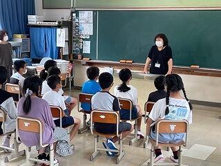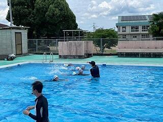 3・4年生は水泳の学習をしていました。ビート板を股にはさんだり、背中に浮き輪乗せたりしながら学習を進めていました。今日も暑かったので、みんな気持ちよさそうでした!
