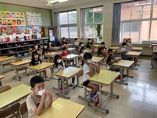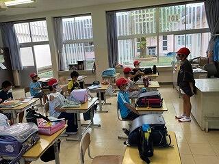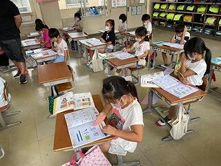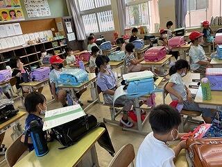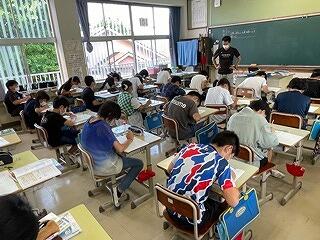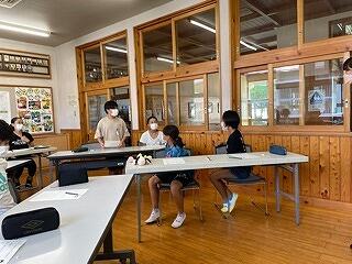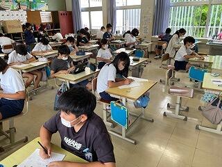 1年生は夏休みの生活について課題やきまりを確認していました。2年生はまとめのテストをしていました。