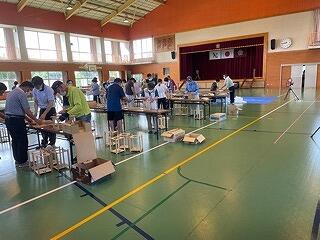 理科の勉強で電池の回路図の勉強を終え、学習で使った車を体育館で一斉に走らせていました。学習をいかして電池のパワーが最大限出るつなぎ方をして、ビュンビュン走らせていました。一番早いのは誰の車でしょうか?