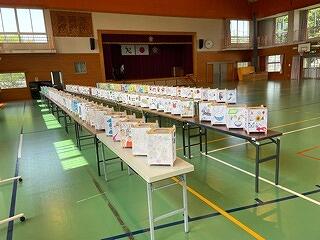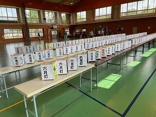 7月9日(土)午前8時30分から体育館で灯籠づくりがありました。地域文化の継承を目的とするイベントで、以前は催し物もしていたそうです。本日は民生委員、町づくり協議会、野尻地区友愛クラブ連絡協議会、野尻小PTA、町内ボランティアの皆さん総勢約30名にお集まりいただきました。台紙の絵までは小学校の児童(1年から6年)が1人1枚ずつ作成していましたので、今日は、その台紙を貼るための灯籠の木枠と、絵の貼り付けを地域の皆様にしていただきました。皆さん慣れた手つきで手際がよく、約1時間半の時間で見事完成しました。灯籠は小学校の体育館で来週月曜日から1週間展示された後、校区内の施設(支所、JA、郵便局、銀行、道の駅、福祉施設等)に8月いっぱい飾られるようです。また、11月3日の文化祭でも展示されます。是非ご覧ください。