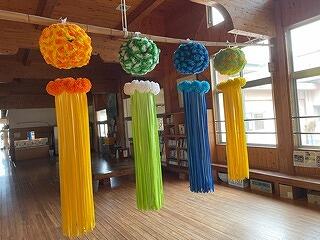野尻小の職員室前のホールに七夕飾りが設置されました。