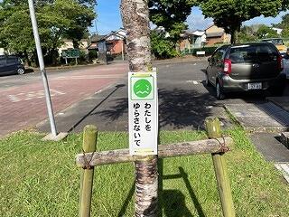 でも、木を強くゆさぶると、傷めてしまうので、、、とうとう、こんな表示が、、、。