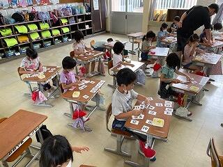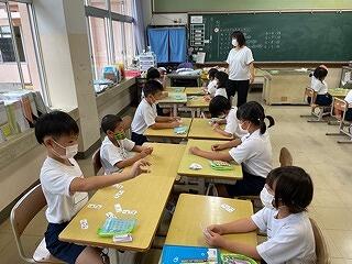 1年生はカードを1~20の順に並べる学習をしていました。きめられた時間で並べようと張り切って取り組んでいました。