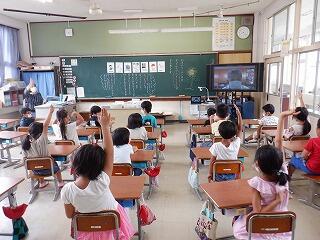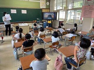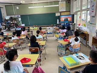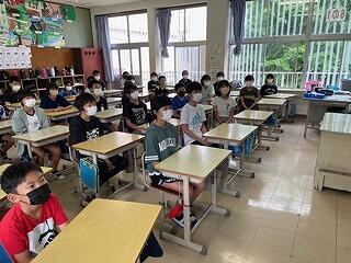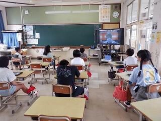 みんな教室で、静かに画面を見つめ、集会に参加することができました。