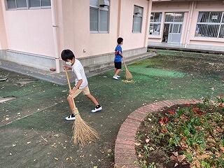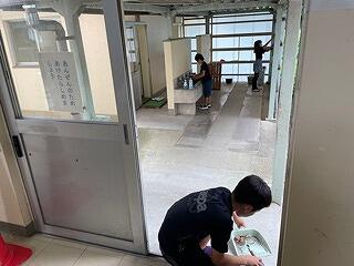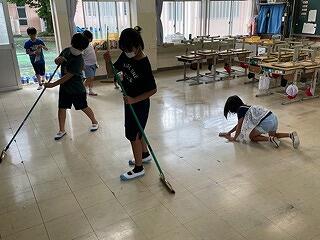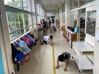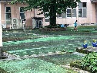 7月21日(木)1学期前半最後の日の清掃の様子です。明日から夏休みに入るので、いつもより念入りに活動していました。屋内・屋外問わず無言で黙々と清掃していました。