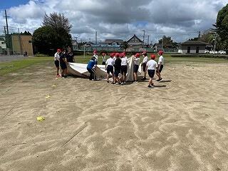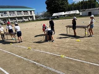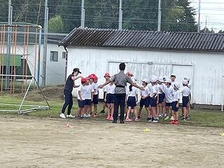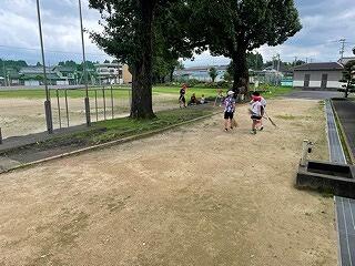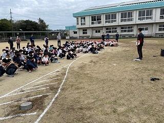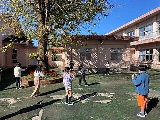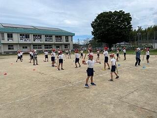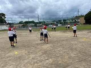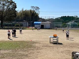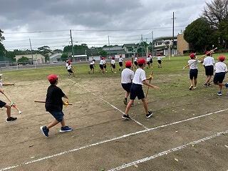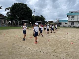 4年生は体育でベースボール型ボール運動の学習をしていました。まずは、ルールをしっかりならい、チームごとにプレーしていました。