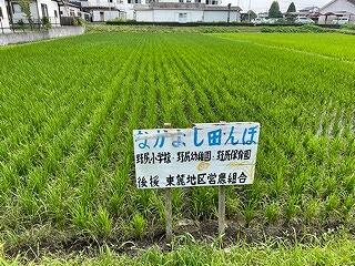 7月1日(金)、1・2年生が植えた芋の苗、3年生が植えた稲の苗の様子をみにいってきました。