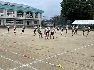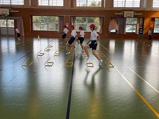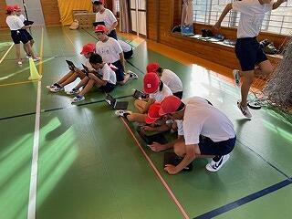 10月31日(月)6年生の体育の研究授業がありました。「短距離を走るときの姿勢について考えよう。」という学習のめあてで、ミニハードルをつかい、足の接地時間を短くする方法を考えながら、走る練習を繰り返しました。途中、ペアに自分の走る姿をタブレットで録画してもらい、その映像を見ながら課題解決を図る時間がありました。授業最後の走りはどの児童も見違えるように走るフォームがきれいになっていました。このフォームを覚えて走る練習を続ければ、走力は必ずついていくと思われます。素晴らしい授業でした!