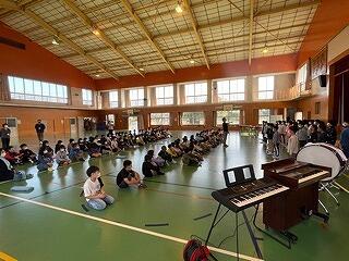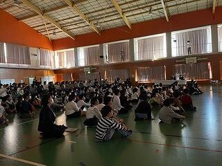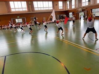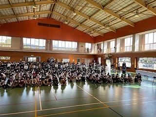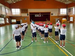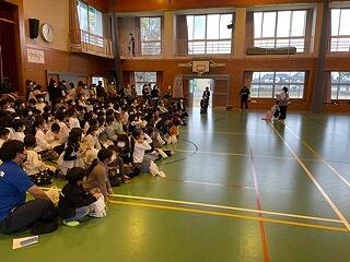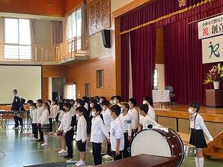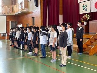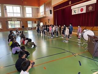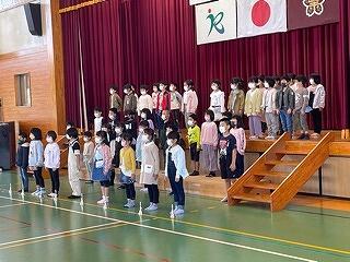 1・2年生は体育館で創立記念式典の練習をしていました。並び方や発表練習をがんばっていました!
