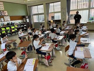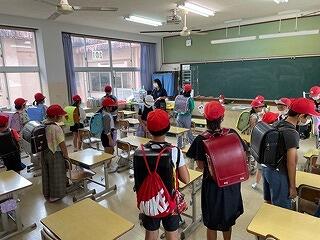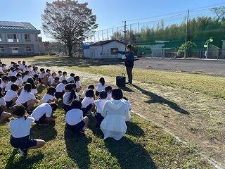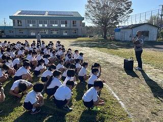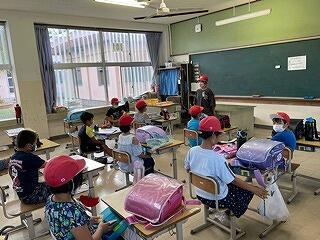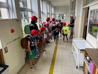 11月2日(水)、火災を想定した避難訓練がありました。火元は家庭科室でしたが、予告なしの訓練でしたので、いつもより緊張感の増した訓練になりました。火災が発生してから5分、避難指示の放送があってから2分40秒で運動場に全員避難できました!避難後に消防署の方から講評をいただくとともに、代表児童が消化器で火を消す体験をさせていただきました!これから寒くなる時期を迎えます。火事をおこさないよう気を付けるとともに、火事に遭った場合は今日の訓練を思い出して、鼻や口をおおって逃げること、火災現場から遠ざかるようにして逃げること、先生や大人の指示に従うこと、そして、「お(おさない)か(かけない)し(しゃべらない)も(もどらない)」を守ること!自分の命を自分で守れるように、もしものときに備えてほしいと思います。消防署の皆様、ありがとうございました!