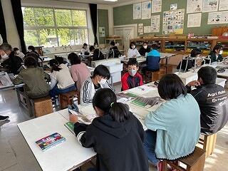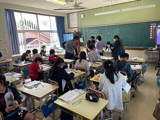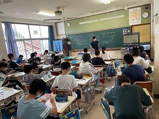 5年生は算数を、6年生は家庭科の学習をしていました。みんな集中して学習に取り組んでいました。