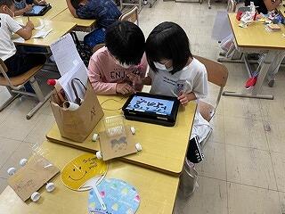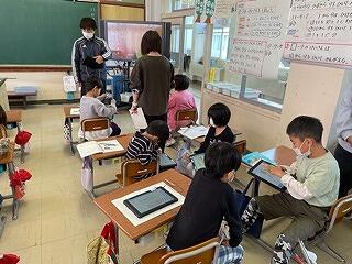1年生は昨日の図工の続きをしていました。今日は絵の具を使うようです。2年生は、あったらいいなと思う物をタブレットのお絵かき機能をつかって描いていました。国語科の発表の際に使うようです。